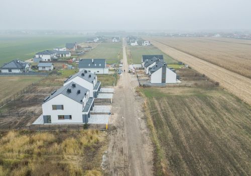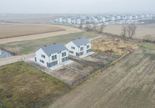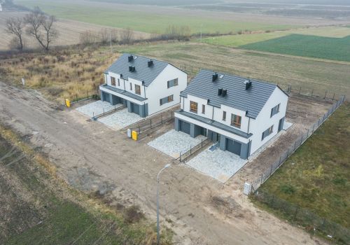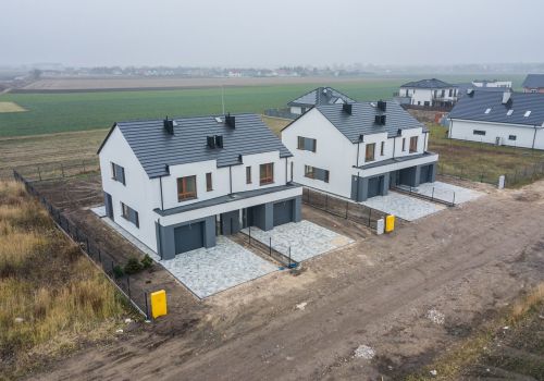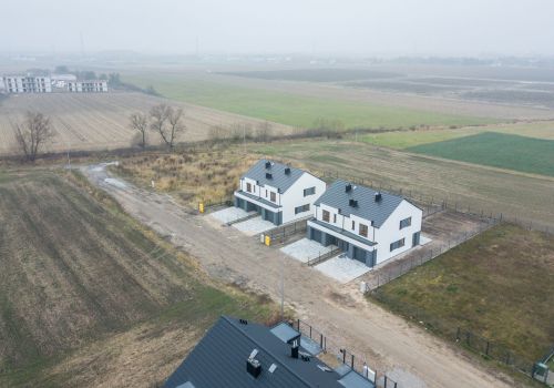 Dwa domy jednorodzinne dwulokalowe, każdy lokal o powierzchni 112 m2. Zakończenie budowy – wrzesień 2021
